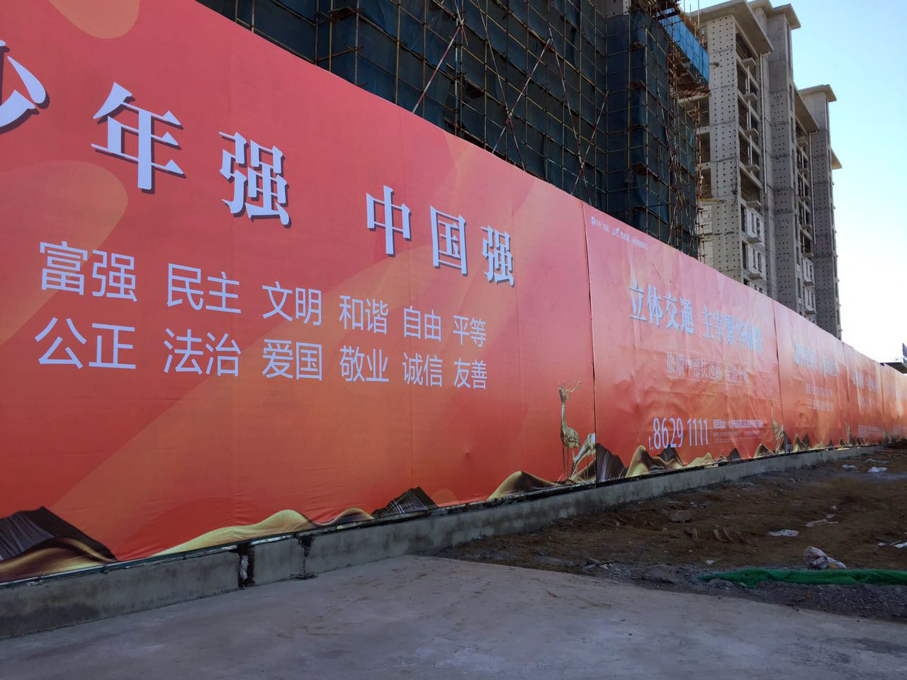 金科集美郡售樓處網(wǎng)格布樓梯條幅制作